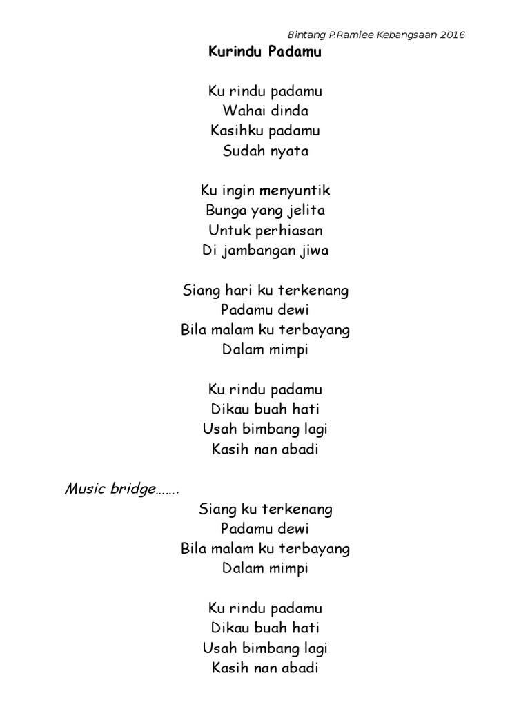 Lirik Lagu Bintang P Ramlee Pdf